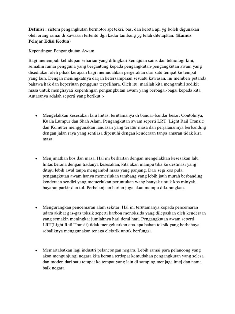 Doc Masalah Sistem Pengangkutan Awam Di Negara Kita Dan Cara Mengatasinya Ellis Suraya Academia Edu from 0.academia-photos.com Pelajar tingkatan 3 perlu menyiapkan kerja kursus yang merupakan jenis pentaksiran pelbagai instrumen yang terdapat dalam peperiksaan pt3. Sebaiknya hal ini dilakukan oleh orang yang berpengalaman, ya. Tambang mahal ~ sesetengah pengangkutan awam seperti teksi dan lrt mengenakan bayaran yang agak tinggi yang tidak mampu dibayar oleh penumpang. Masalah dapat dialami oleh siapa saja. Pengadilan negeri memiliki batasan kewenangan. Perkhidmatan pengangkutan awam yang baik membolehkan pengguna bergerak dari satu tempat ke satu tempat lain dengan mudah dan selesa. Kelemahan dalam mengendalikannya akan menggangu perkembangan pembangunan negara tersebut. Ini merupakan salah satu cara memanjakan diri dan menikmati waktu lebih santai, sehingga membuat pikiran tenang.