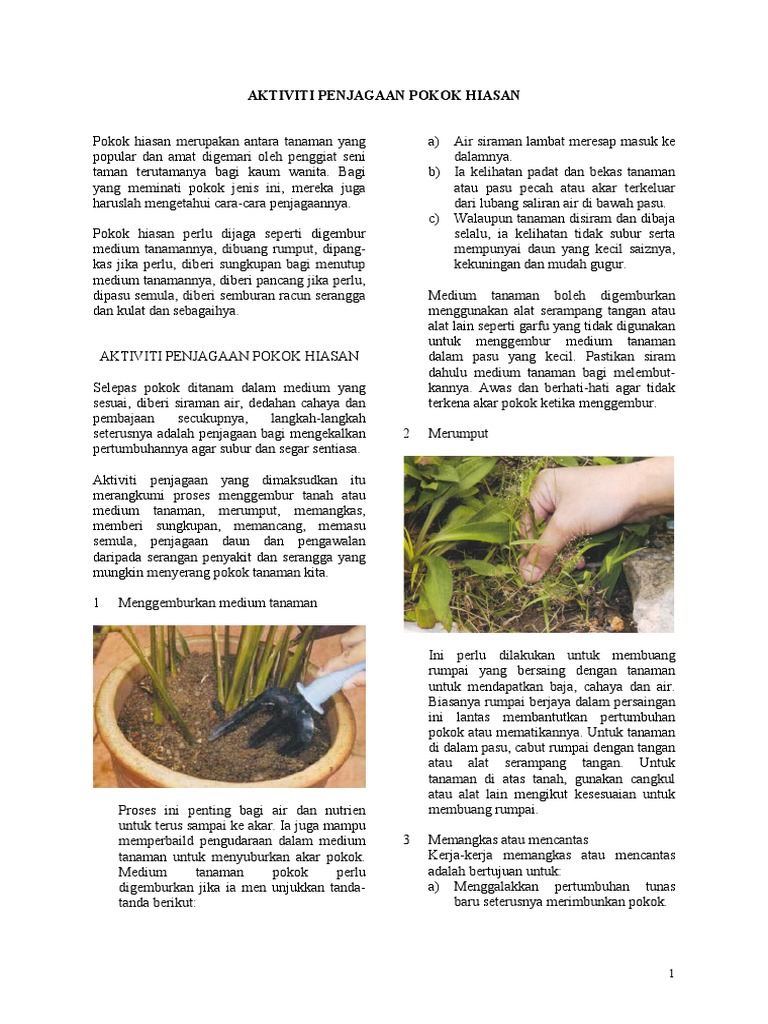 20646188 Rph Kh Penjagaan Tanaman Hiasan Tahun 4 Download Pdf from cdn.vdokumen.net Tanaman hias dalam penjabaran umum nya yaitu merujuk pada semua tumbuhan yang sengaja ditanam sebagai komponen taman di rumah, kebun rumah, pemercantik ruangan, penghias. Tanaman hiasan atau pokok hiasan adalah tumbuhan yang ditanam untuk tujuan hiasan pada taman dan projek reka bentuk landskap, sebagai tanaman rumah, untuk bunga potong dan pameran spesimen. Rumpai perlu dibuang untuk mengelakkan persaingannya dengan. Tanaman hiasan perlu dijaga supaya hidup dengan subur. Mungkin sebagian orang pasti pernah jatuh dan luka lalu diobati. Jenis tanaman hias daun terlengkap untuk indoor dan outdoor. Penanaman ini membentuk satu cabang besar hortikultur. Untuk hiasan teras, kamu bisa menaruh tanaman dengan daun lebar dan licin mengkilap ini.